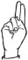 На ћирилици написано ЛАБУДА БОЋАНИН састоји се из 13 слова [?]. Исписано ћириличном једноручном азбуком за глувонеме:
